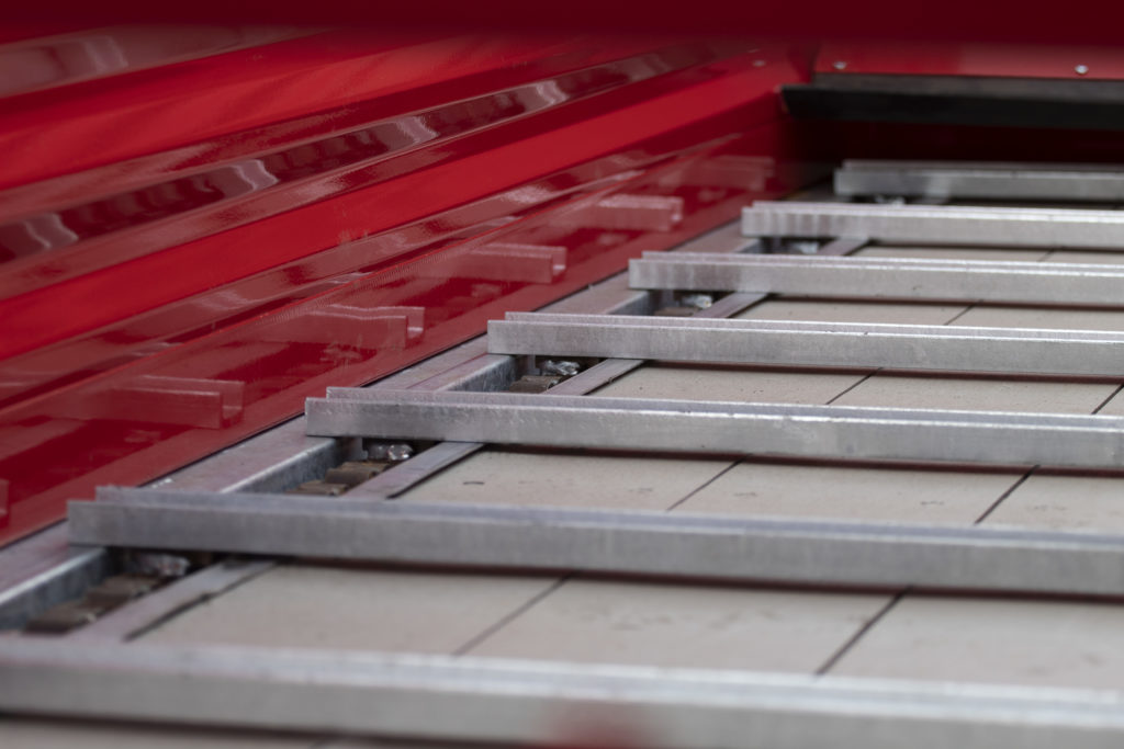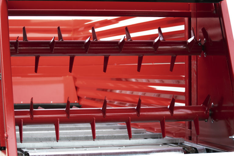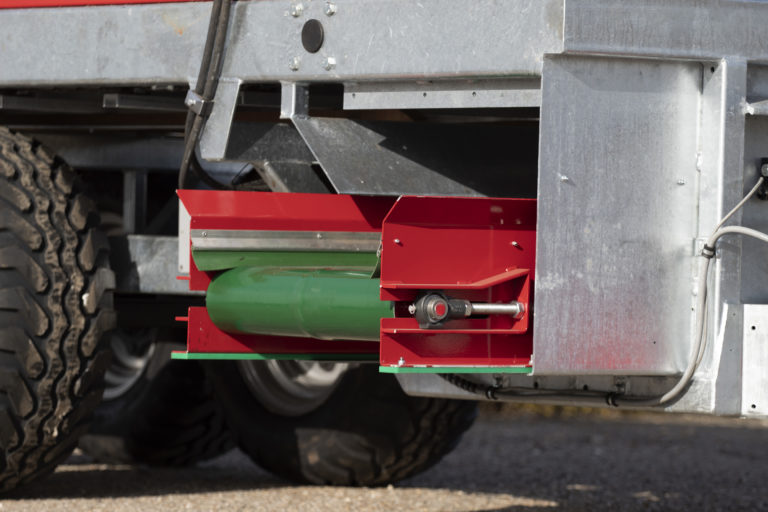 Onze machine wordt standaard geleverd met een sterke bodemketting en twee verdeelwalsen. De bodemketting bestaat uit twee kettingen die elk negen ton trekkracht hebben. De bodemlatten zijn gegalvaniseerd en demontabel. De verdeelwalsen zijn standaard met gezette tanden uitgevoerd. Naast de standaard walsen bieden wij de optie voor een messenwals. Deze optie is uitermate geschikt voor het strooien van onder andere vaste stalmest. De messen op de wals zijn demontabel en kunnen gemakkelijk vervangen worden.