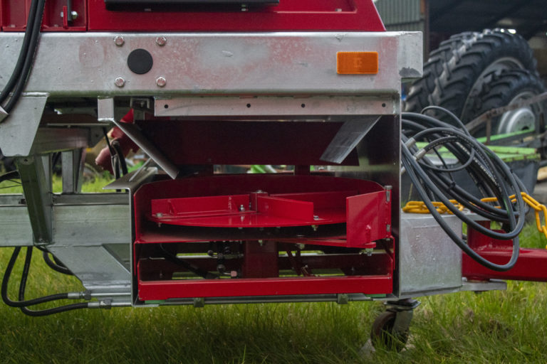 - Regelbare snelheden van de bodemketting en de strooiunit, vanuit de trekker